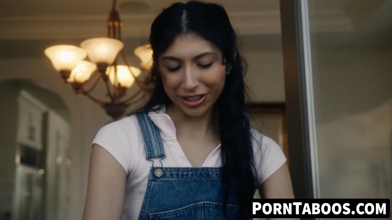 Penelope Woods, the petite Latina teen with small tits, seduces her delivery man for some intense fucking. She deepthroats his cock and takes it in her pussy. He pounds her hard and cums all over her face in a hot, taboo fantasy.