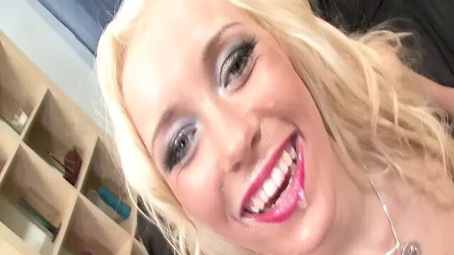 A blonde slut takes deep anal sex from her partner. She gapes her ass wide as he pounds her with his big dildo. He face fucks her and she takes it deep in her throat before he cums in her mouth and she swallows it happily.