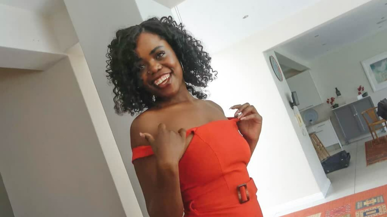 A stunning ebony MILF in a short skirt and high heels participates in a fake job interview that quickly turns into a hot fucking session. The sexy black babe's fake job interview is interrupted by a passionate encounter with a well-endowed white guy, who takes her from behind while she moans loudly. The steamy session ends with the black babe's juices dripping down her legs.