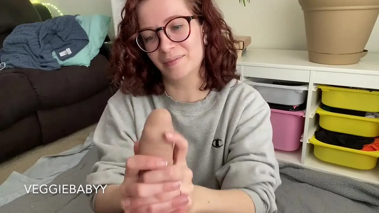 VeggieBabyy's dirty blowjob POV — grey shirt on — toy play - full hardcore action. Red hair, curly locks, blue eyes, glasses, sweatshirt fetish. Cute, custom, nonnude, instructional. Dildo, handjob, fetish, full video. Sensual, sweaty, edgy, explicit. Redhead's sweet mouth takes it all, slow, dirty, raw, and real.